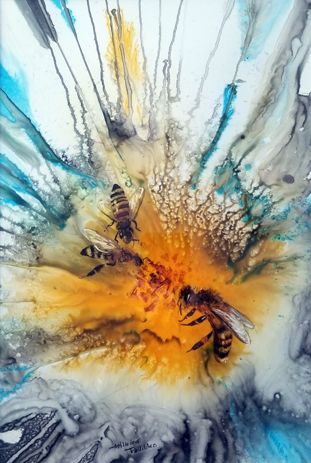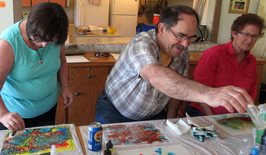 June Acrylic Ink Art Workshop and Pot Luck at Hilkka Pellikka's church camp