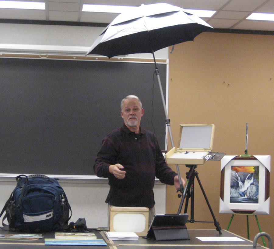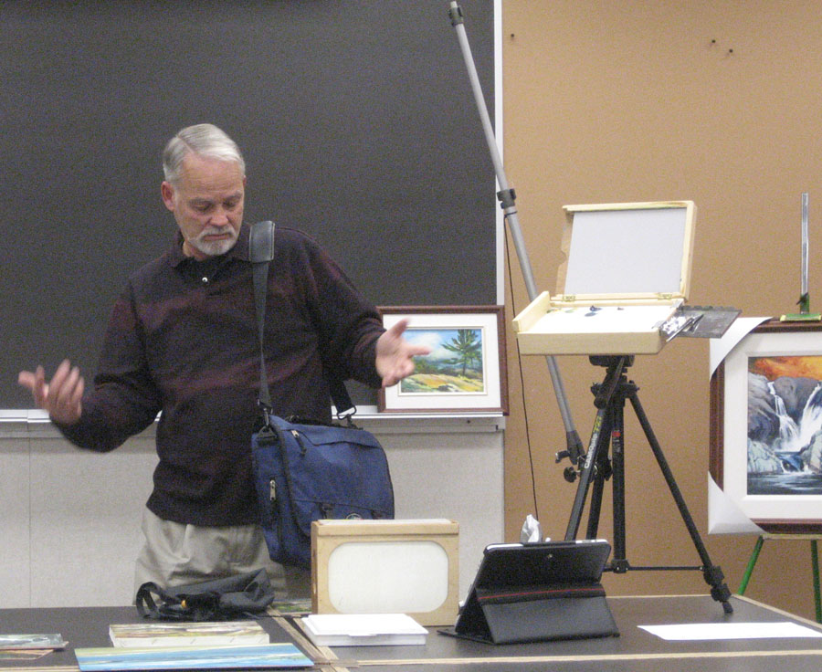 Guest speaker David Read spoke about Plein Air Painting and recommended equipment at Algoma Art Society's November 2010 meeting