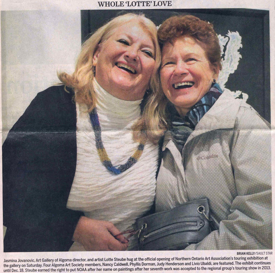 - 57th Annual NOAA Juried Painting Exhibition – opened Sept. 21, 2013 in Kirkland Lake – Award – Anne Laidlaw. Marilyn Mills, Hilkka Pellikka and Lotte Steube accepted