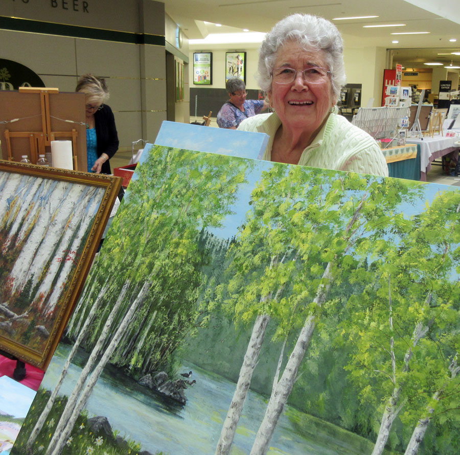 Bon Soo Art Show in Vacant Store in Station Mall – 16 AAS members displayed – Displays shown by Hilkka Pellikka, Judy Henderson, Nora Ann Harrison and Phyllis Dorman