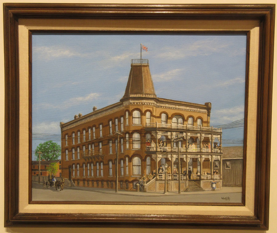 This 34 painting display included 20 by current members and 14 by past members, 9 or who are deceased. The oil painting entitled "Bridal Viel Falls in Agawa Canyon" was by Stuart MacDougall, the first president of the Algoma Art Society when it first formed in January 1948. This painting was donated to the Sault Ste. Marie Museum. The exhibition also contained a painting entitled "Mist on the Hill" by Dan Murray, a founding member and one of the first vice-presidents of the Algoma Art Society. The graphite sketch by Rita Tuckett was entitled "Backyards - Downtown Sault Ste. Marie" dated 1968. Rita Tuckett was also an active Society member who went on to become a well-known television and movie actress starring in movies such as "Agnes of God" with Jane Fonda. Rita passed away in 2005. Also included in the exhibition are paintings by past members who are no longer with us, such as Fran Pond, Janina Kryweinczyk, Katie Kopec, Doris Foster, Eddie Kosiba, and Sally Moorhouse.