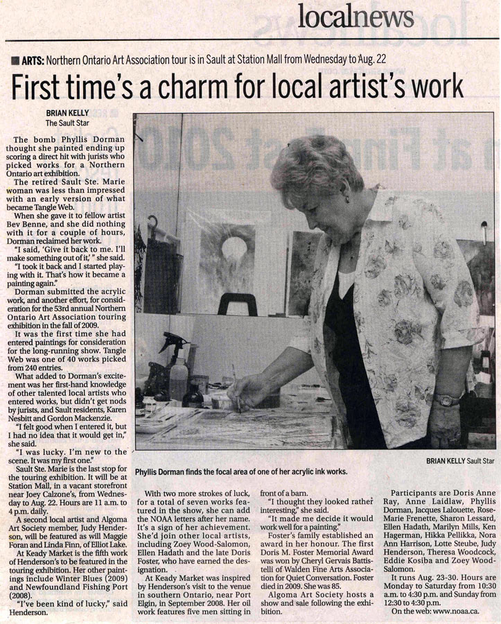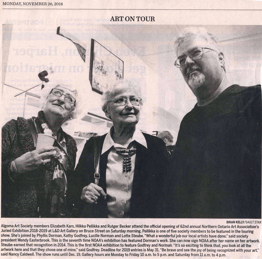 - Sault Star article by Pat Baker on Dec. 3rd on Algoma Art Society History.