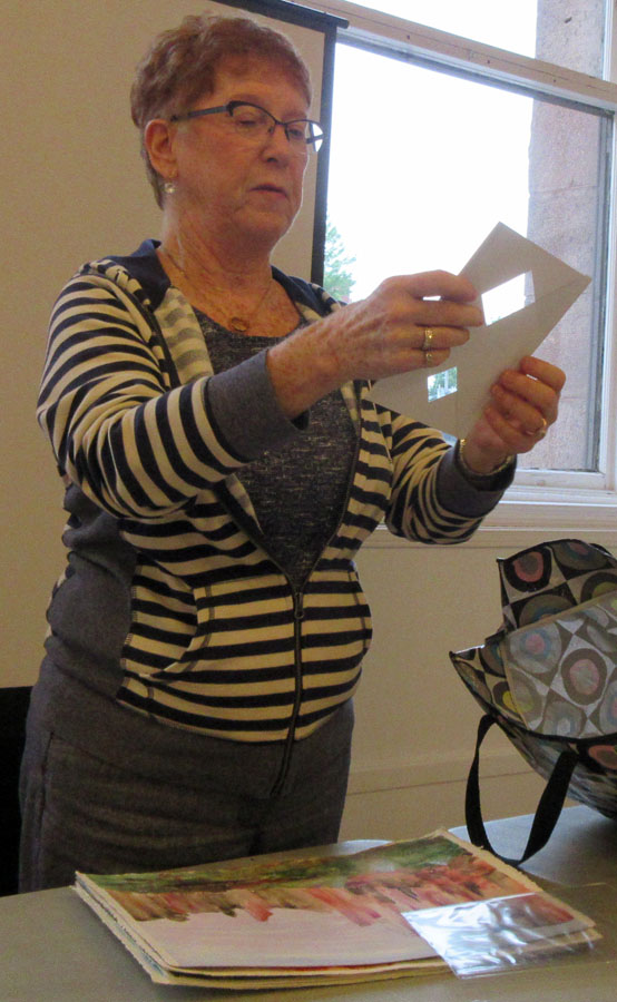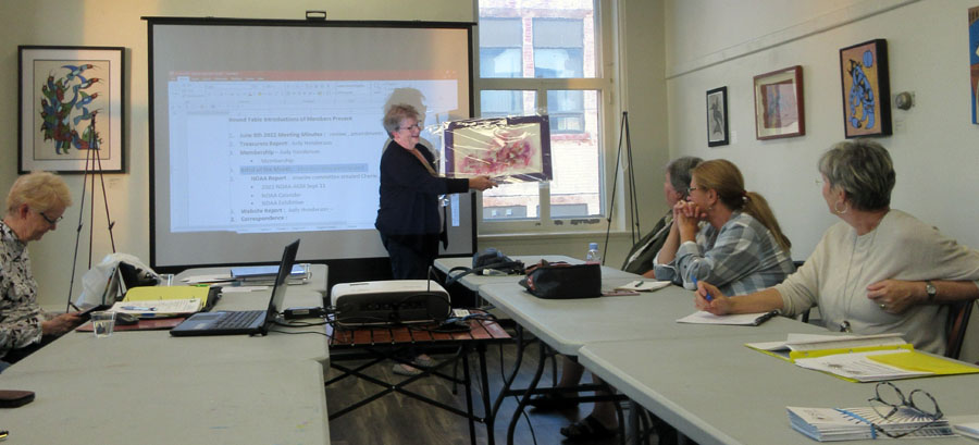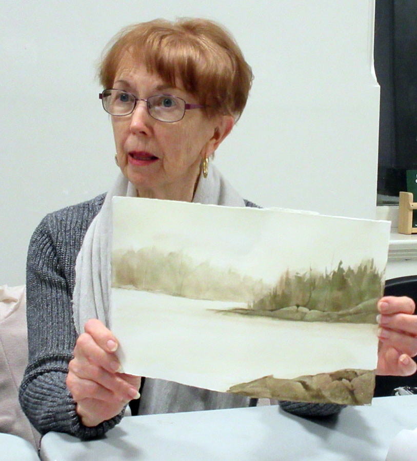 Fourteen members attended the meeting held at the Art Gallery of Algoma. NOAA rep Kathy Godfrey did an excellent presentation on how to display a watercolour without framing and glass which are now accepted at most art exhibitions. Kathy explained the steps involved which are featured in the current Watercolour Artist magazine.