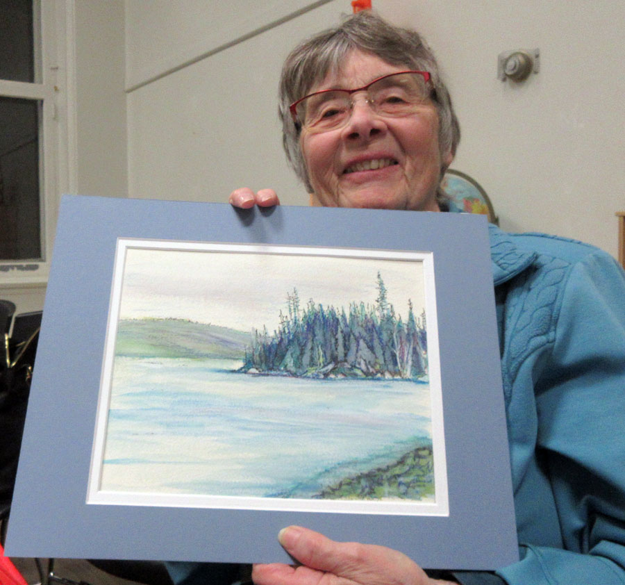 Nancy passed away in December 2019. Those attending were honored with the opportunity to view many of Nancy's artistic accomplishments in various media, especially watercolour. Nancy was always open to experimenting with multiple methods and medias and loved to share her knowledge with others. Nancy contributed much to the Algoma Art Society and will be greatly missed. Her husband, who has shared over 60 years with her, gave a moving speech of their life together. One of the highlights was when they biked across Canada to celebrate their 40th Wedding Anniversary. Her son, who recently celebrated his 50th birthday, which Nancy attended, also spoke very highly of his mother. Her son in law talked about when he first met Nancy and her husband and how they introduced him to waterskiing with their daughter and his then future wife on his shoulders. After the speeches family and friends attending were treated to a delicious lunch and were welcomed to take home one or more unframed paintings of Nancy's as a keepsake. It was a wonderful evening and tribute to Nancy who will never be forgotten by Art Society members.