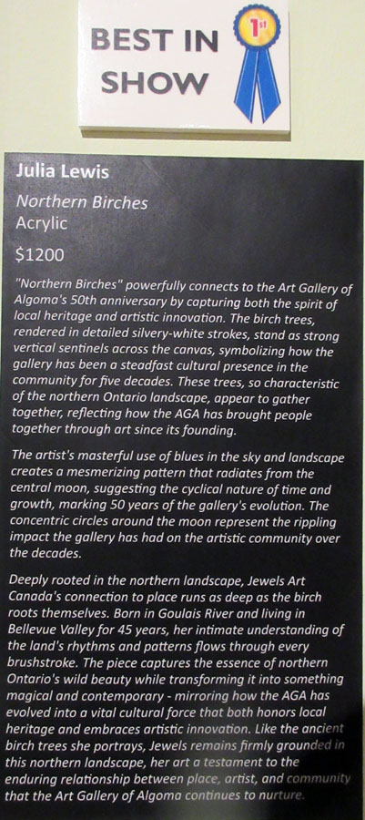 Official Opening of the 69th NOAA was held on Friday, September 5th in Lively Ont. The exhibition will be shown at the Sudbury Art Gallery until Saturday, Sept. 27th, 2025.