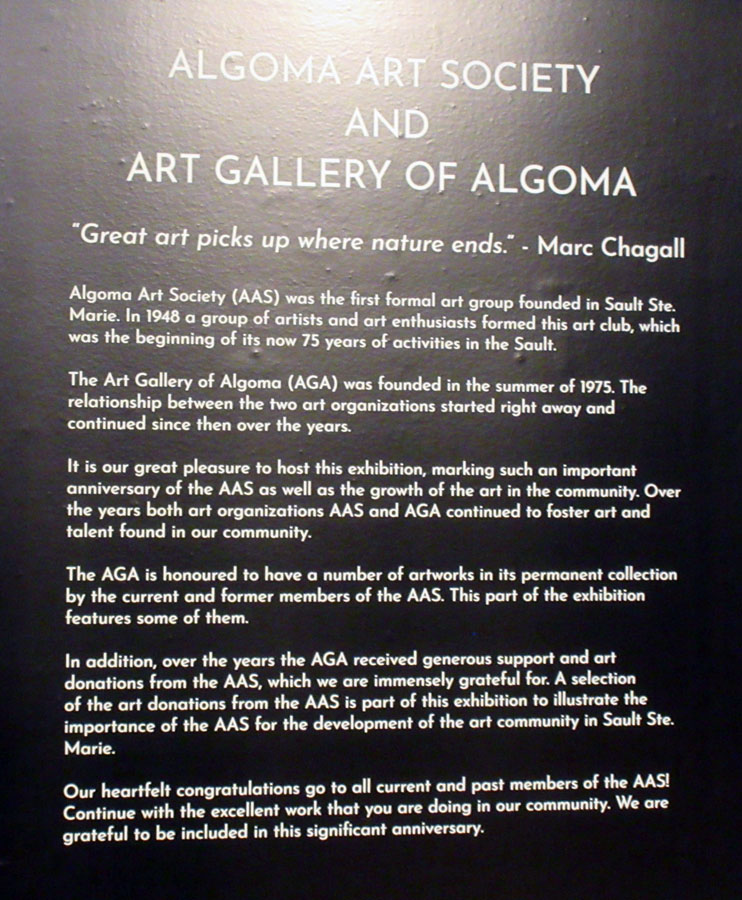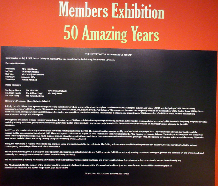 Paintings by all Algoma Art Society Members who entered paintings in the 50th Anniversary Exhibition at the AGA