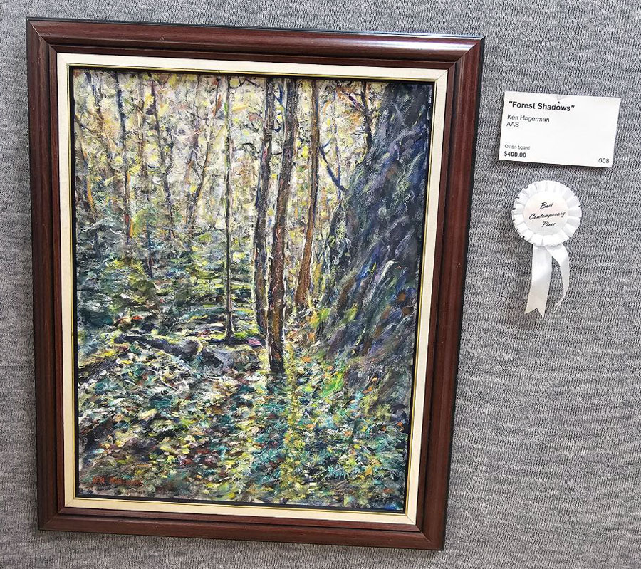 Algoma Art Society member Mary Stevenson received a Third Place Award and three members received Honorable Mentions in the exhibition. Honorable Mentions went to paintings by Duff Jennings, Penny Gabor and Zoey Wood-Salomon. Congratulations everyone!