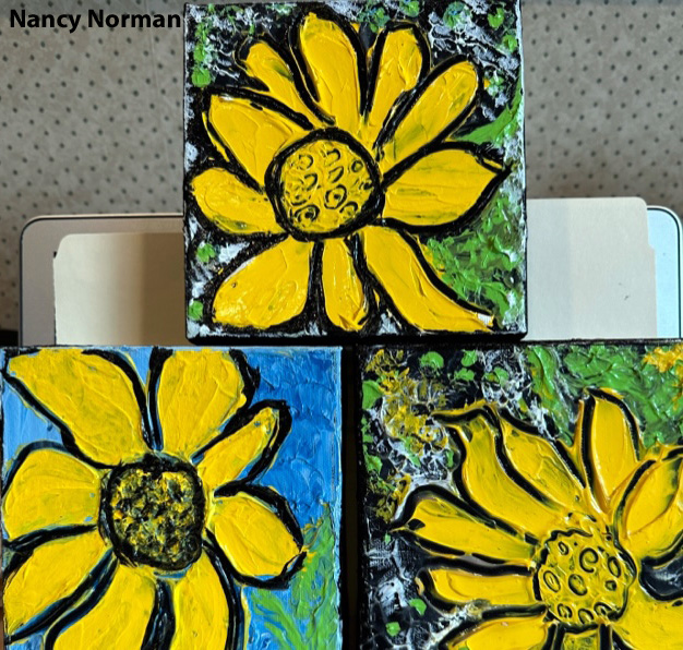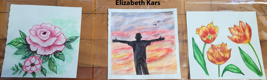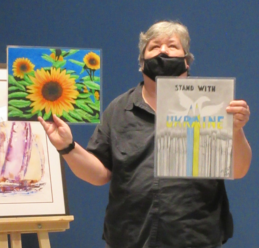 Members brought paintings and explained why that painting held a special meaning to them. Kim showed works she did on Ukraine. Other members who displayed art works that held special meaning for them were Cherie, Pat, Rudy, Nora and Sharon.