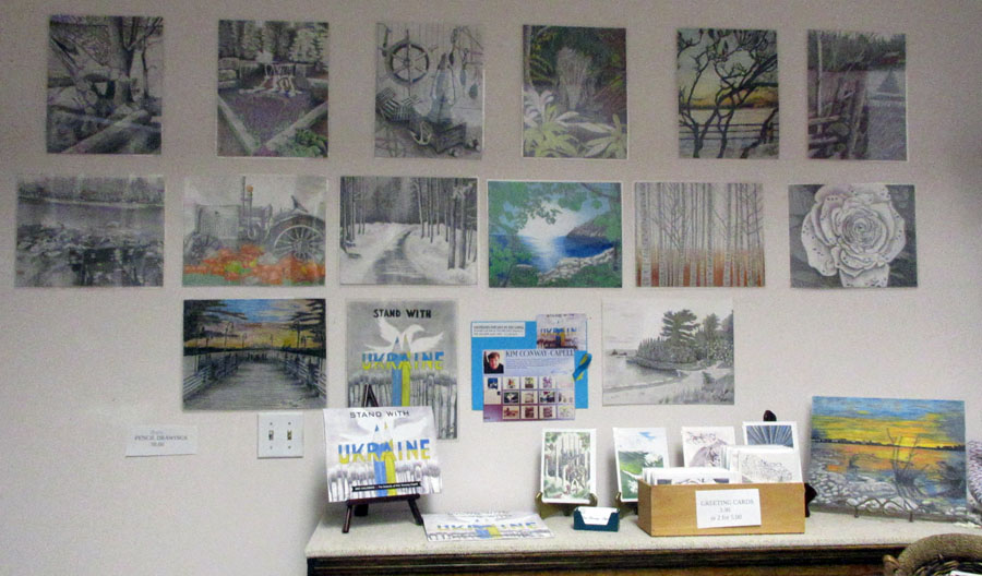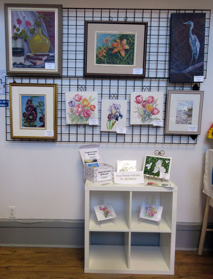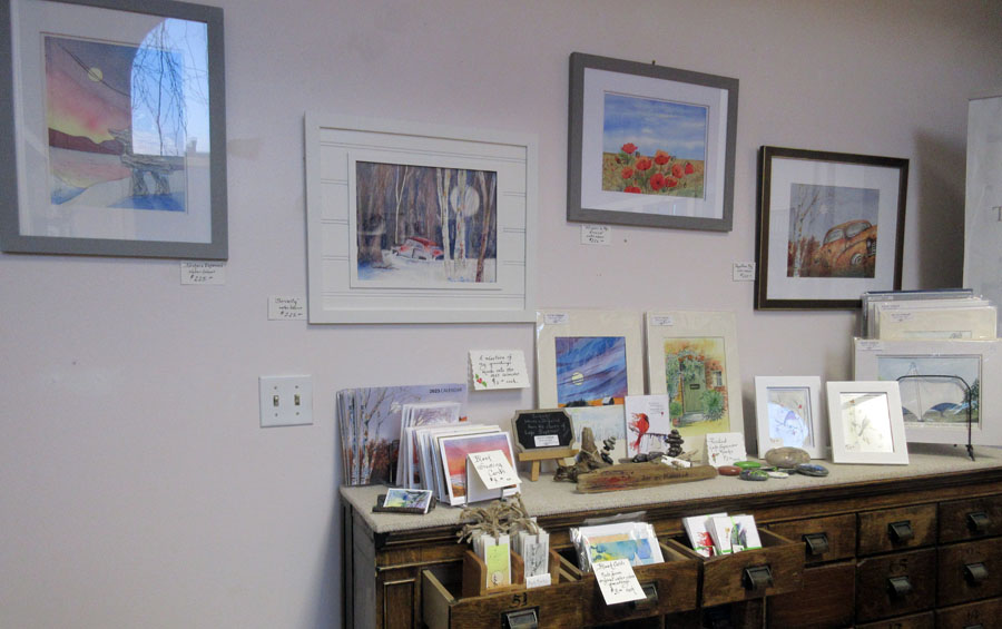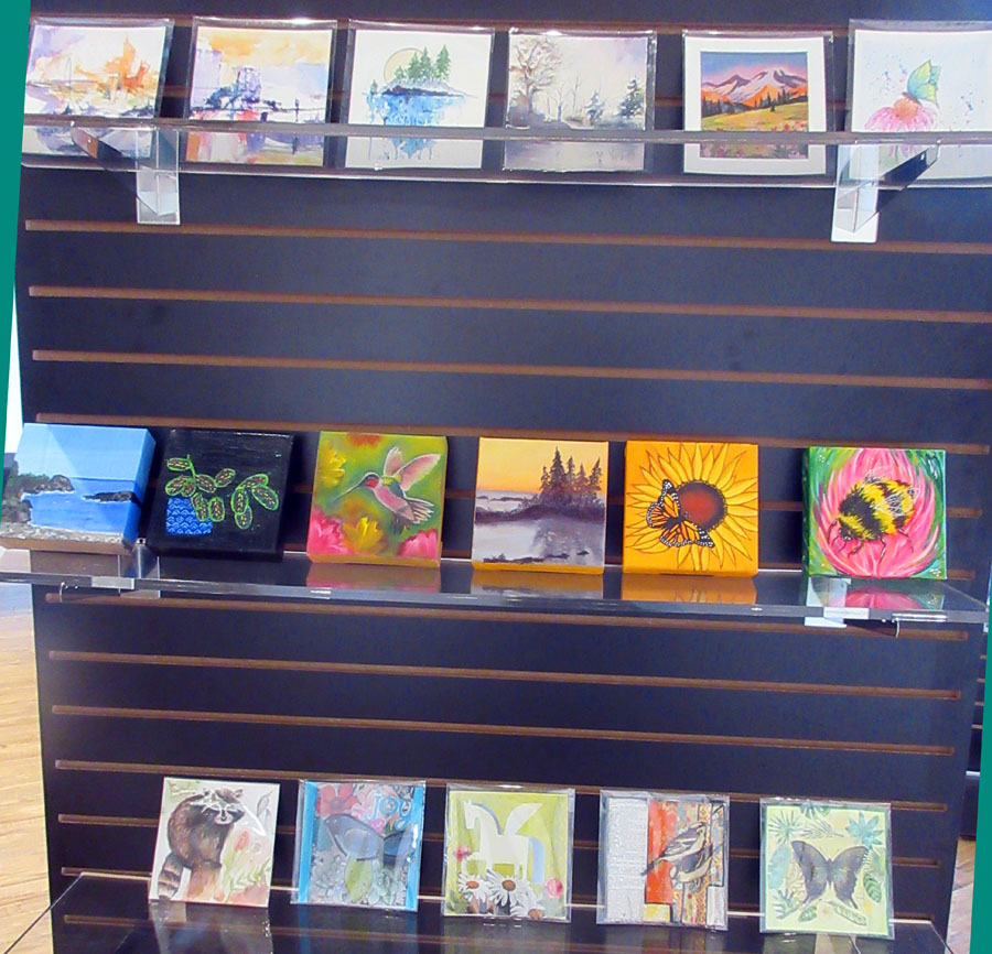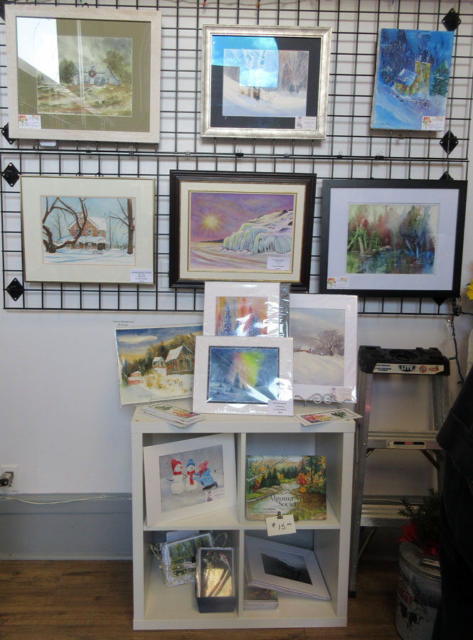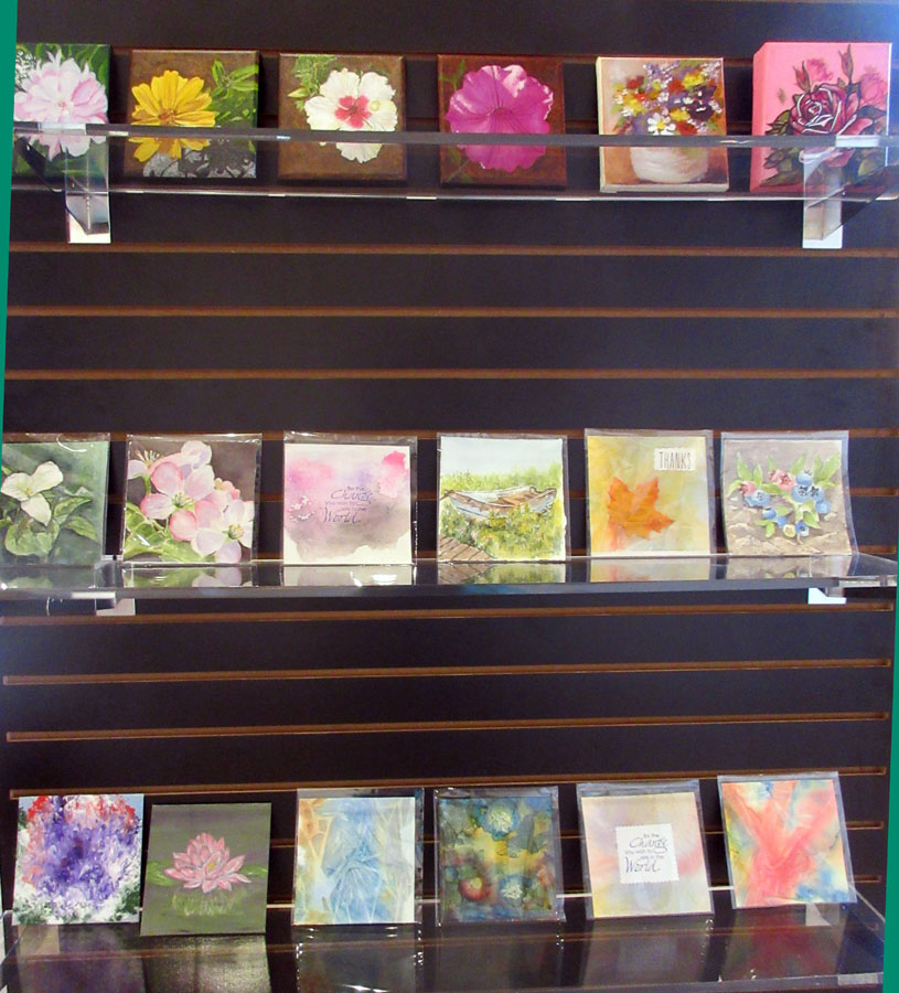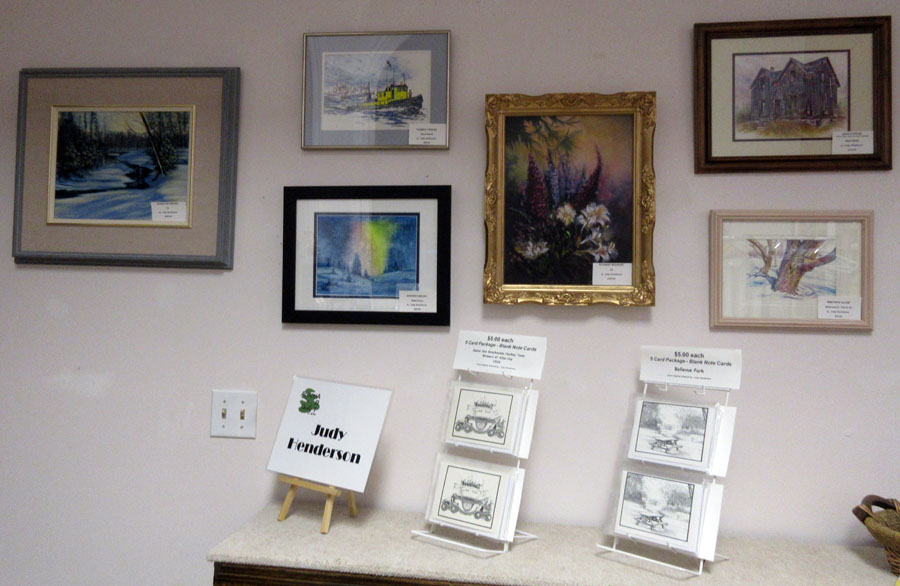 Irene Oktaba's beautiful display of paintings and art cards for sale in the Gift Shop of the Sault Ste. Marie Museum: