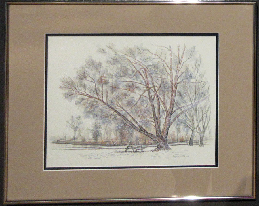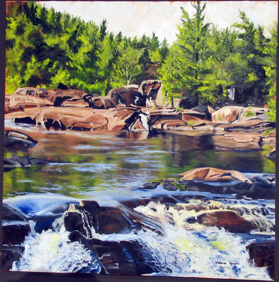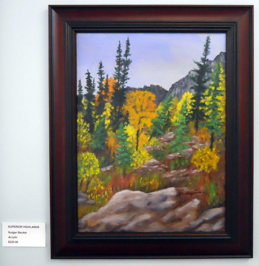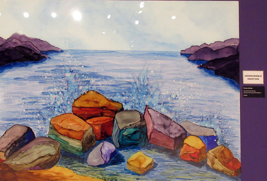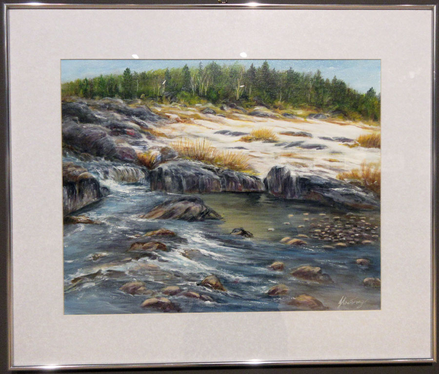 Rutger Becker who had his acrylic painting entitled "Lily Pond" accepted, Ken Hagerman who had his oil entitled "The Mighty Mississagi" accepted, Judy Henderson who had her oil entitled "Artistic Legend" accepted, Dawn Jennings who had her Coloured Pencil and Ink entitled "Nothing Gold Can Stay" accepted, Mary-Lou MacDonald who had her Mixed Media entitled "Commissioned-Decommissioned" accepted, Gary Manzo who had his acrylic entitled "Figure in Motion" accepted, Hilkka Pellikka who had her acrylic entitled "March in Hiawatha Park" accepted, and Warren Peterson who had his Acrylic entitled "White Water Rapids Pukaskwa National Park" accepted.
