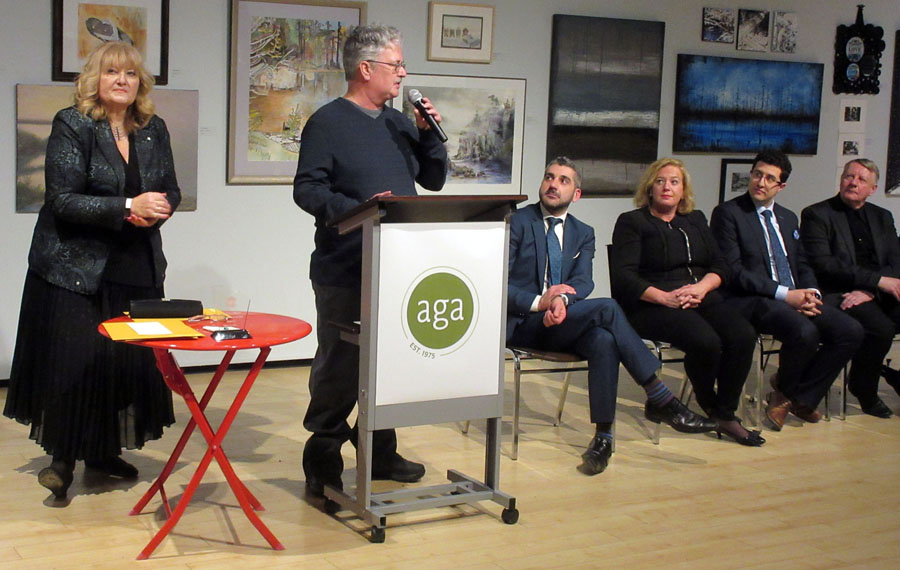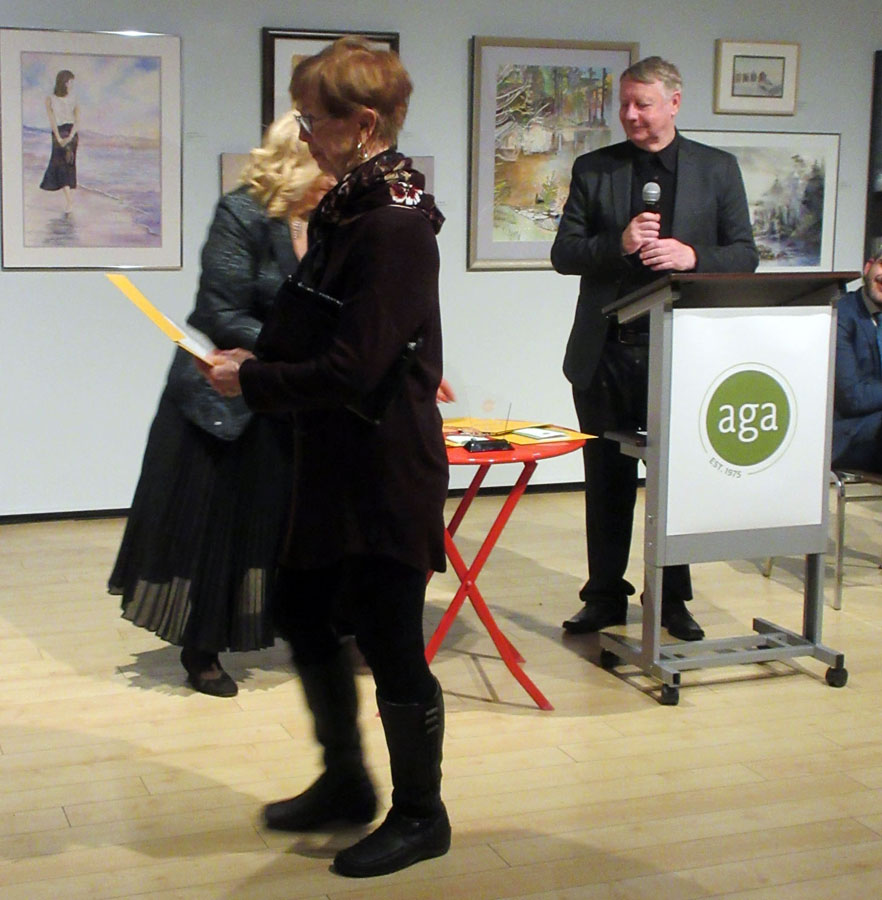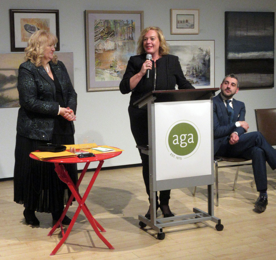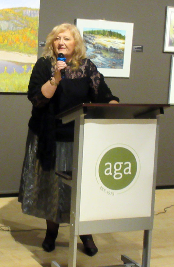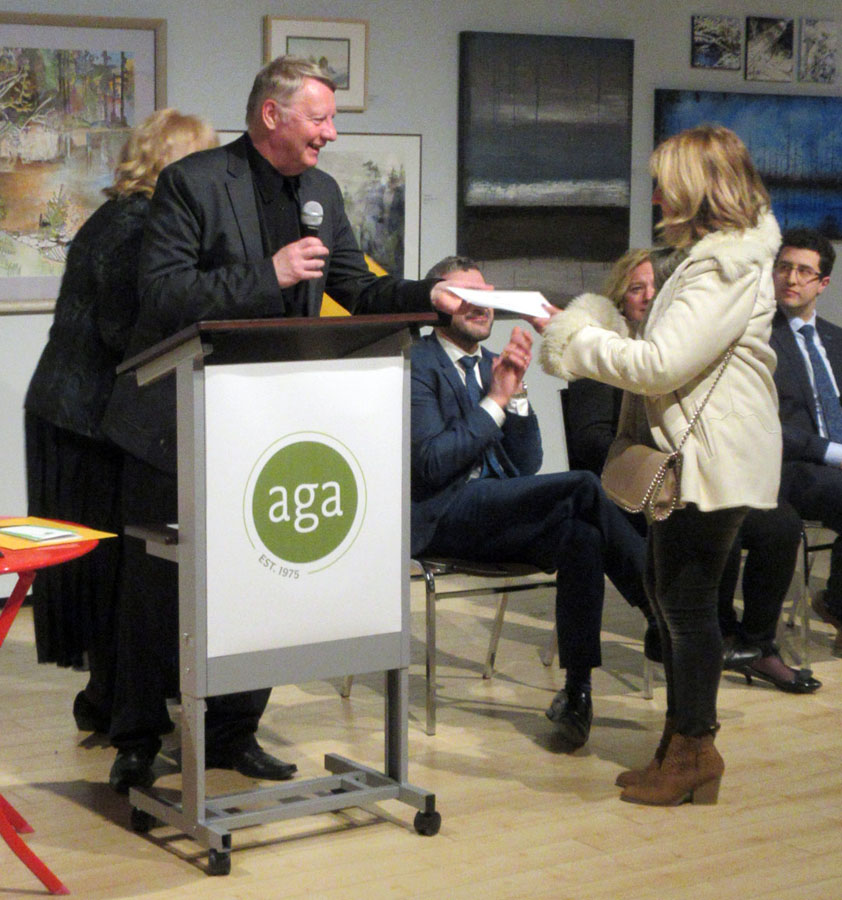 Dignitaries opening the exhibition were Mark A. Lepore, President of the AGA Board, Jasmina Jovanovic, Executive Director, the Honorable Ross Romano, Sault Ste. Marie MPP and Minister of Colleges and Universities, and the Honorable Lisa MacLeod, Minister of Heritage, Sport, Tourism, and Culture. All spoke and distributed awards. Jasmina and Ross Romano thanked Society member Nora Ann Harrison for being the initiator of the Winter Festival of Art and providing the awards for the previous six years. Prizes this year are sponsored by David Ellis, Member of the AGA Board.