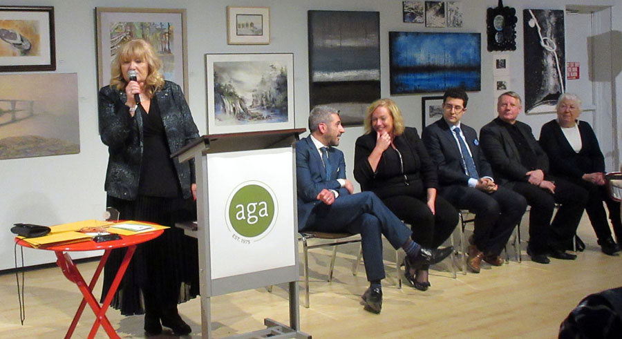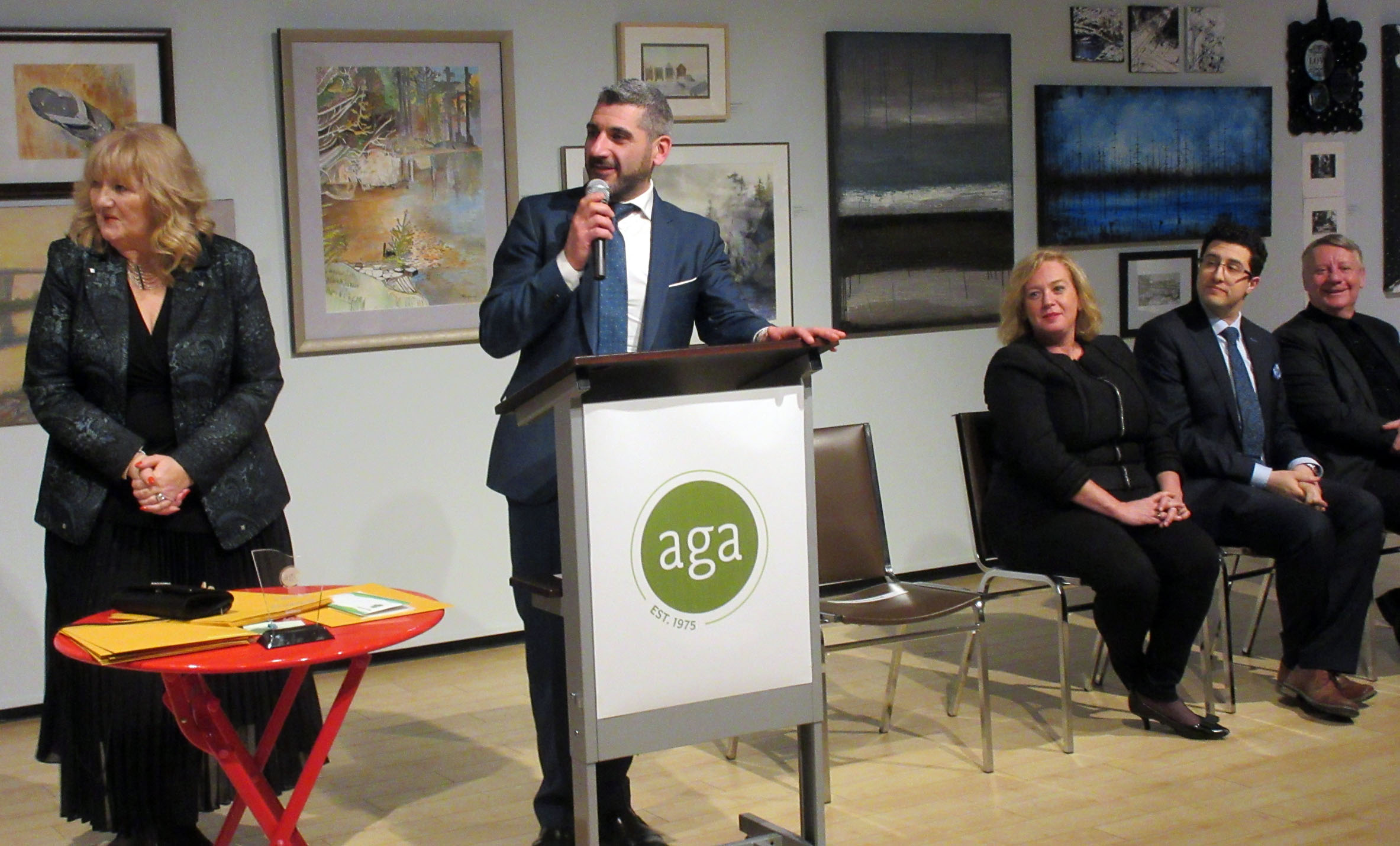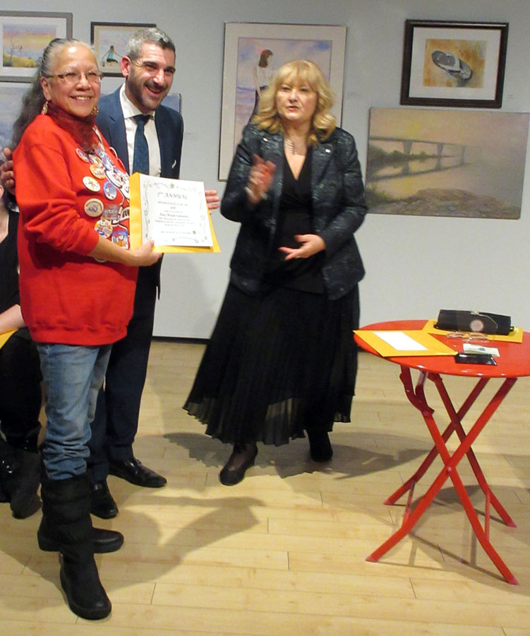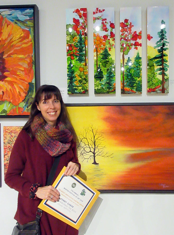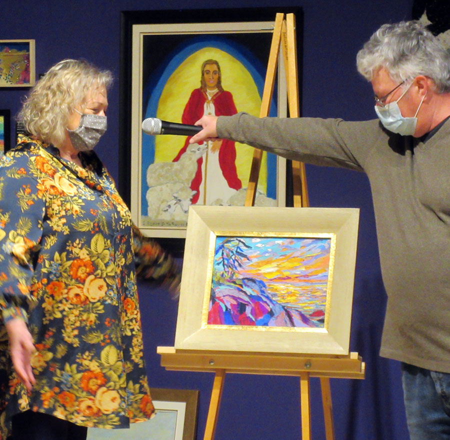 Dignitaries opening the exhibition were Mark A. Lepore, President of the AGA Board, Jasmina Jovanovic, Executive Director, the Honorable Ross Romano, Sault Ste. Marie MPP and Minister of Colleges and Universities, and the Honorable Lisa MacLeod, Minister of Heritage, Sport, Tourism, and Culture. All spoke and distributed awards. Jasmina and Ross Romano thanked Society member Nora Ann Harrison for being the initiator of the Winter Festival of Art and providing the awards for the previous six years. Prizes this year are sponsored by David Ellis, Member of the AGA Board.