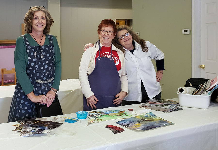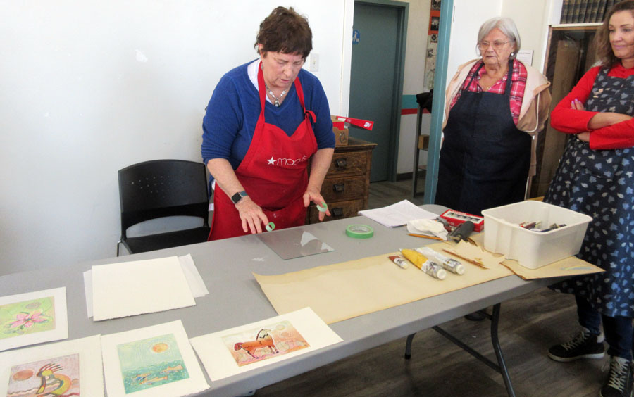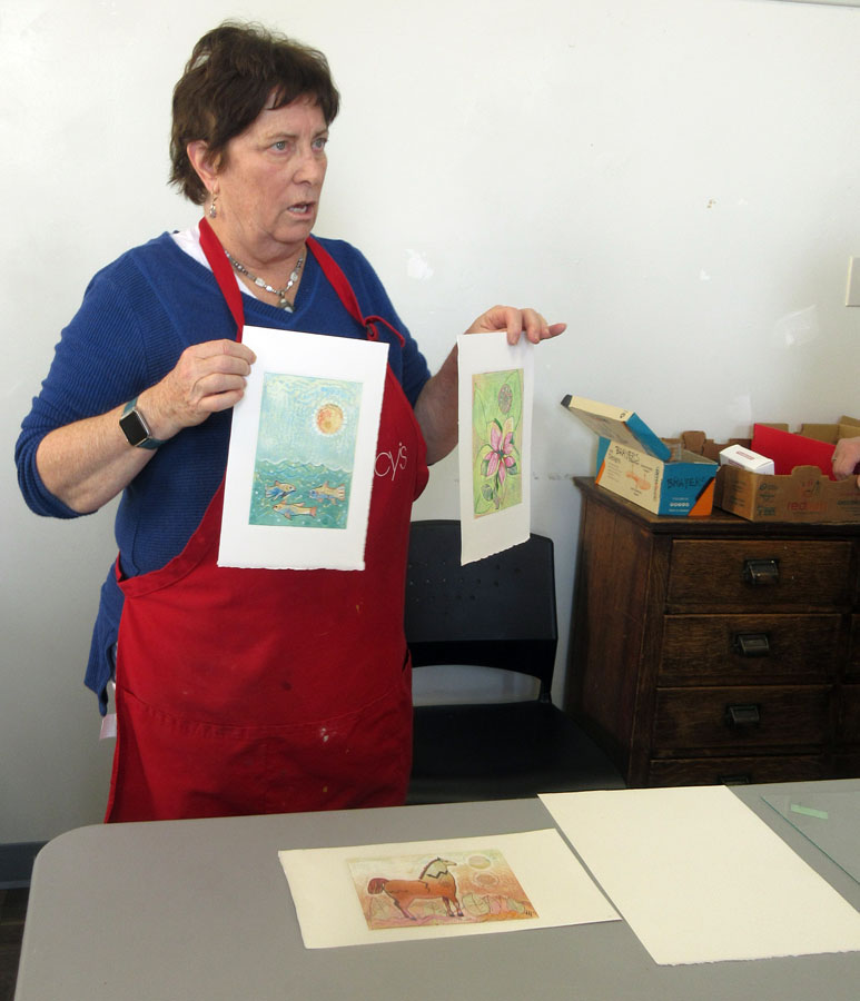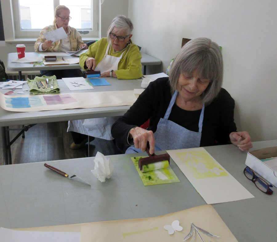 Eleven Algoma Art Society members enjoyed participating in an Oil Monoprint Workshop with instructor Karen Nisbet.