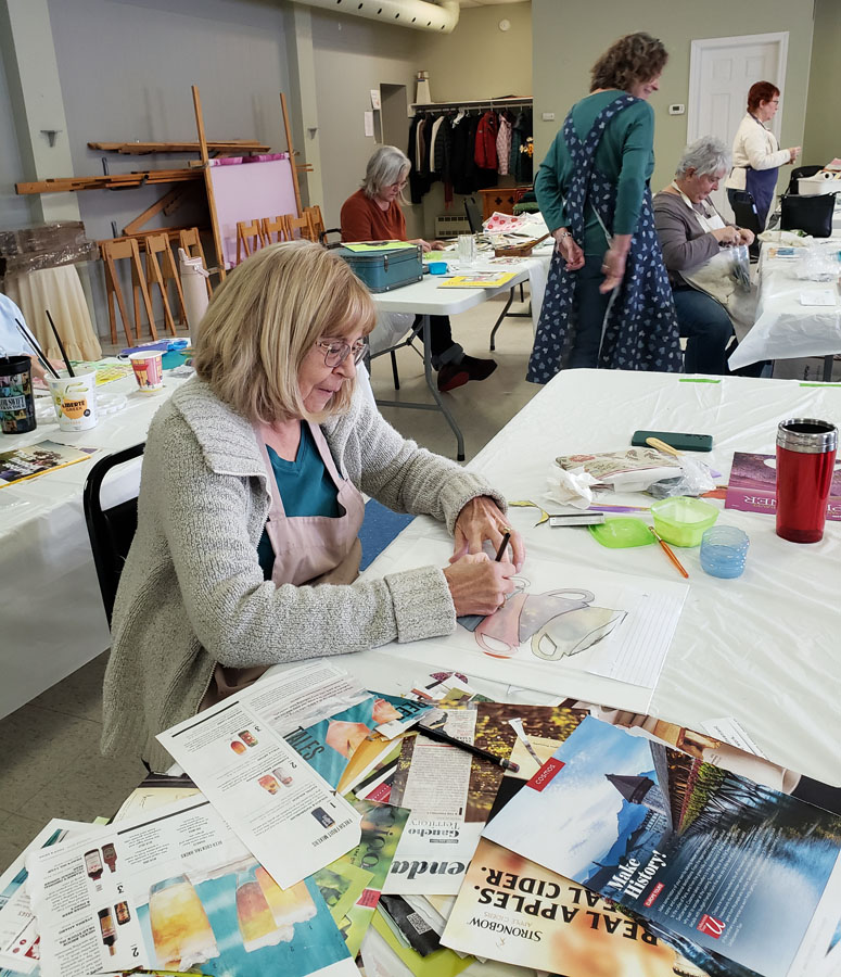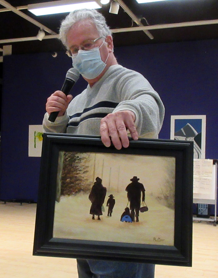 Algoma Art Society members brought no longer wanted art supplies which Rudy did a fantastic job at auctioning all the items to members. Proceeds of the auction went to the Art Society.