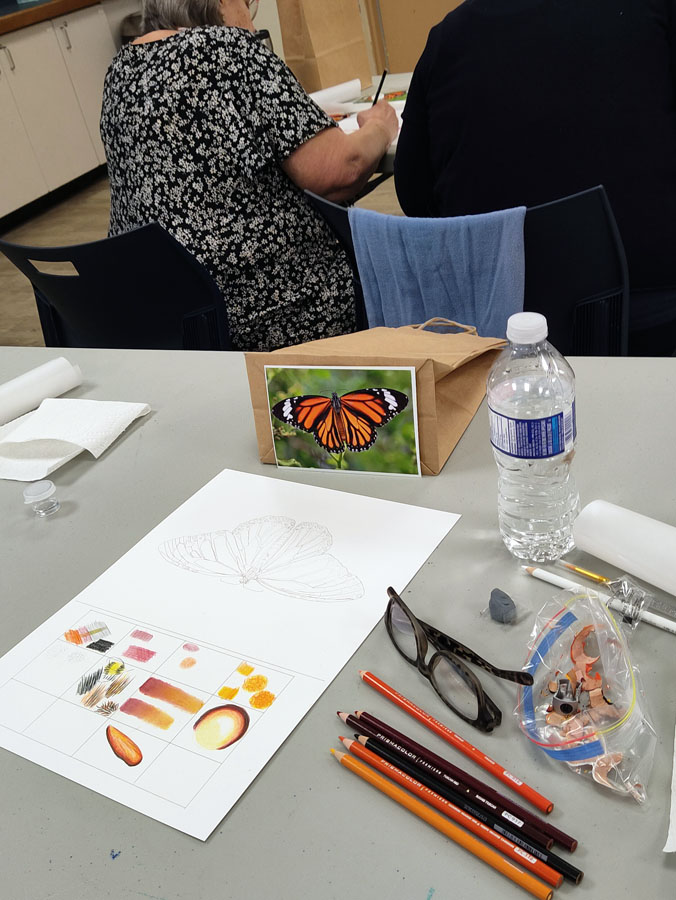 Members and non-members enjoyed a fascinating Coloured Pencil Workshop of a Butterfly put on by Duff Jennings.