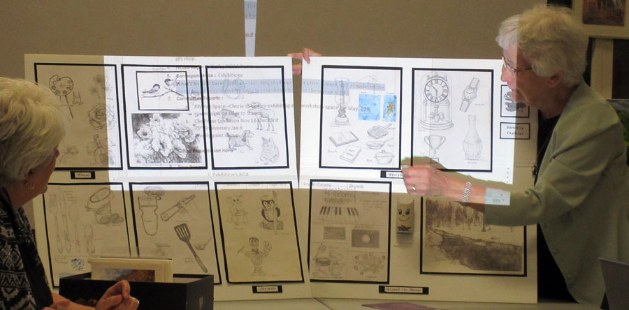Before the opening of the meeting members were offered the opportunity to sketch a still life. Sketch books and pencils were available for members who didn't bring their own. "What's on Your Easel" was led by Ken Hagerman and members who also offered their suggestions critiquing paintings in the beginning and final stages by members who were brought them forward. It was suggested that members bring these paintings to future Art Society meetings showing their progress.