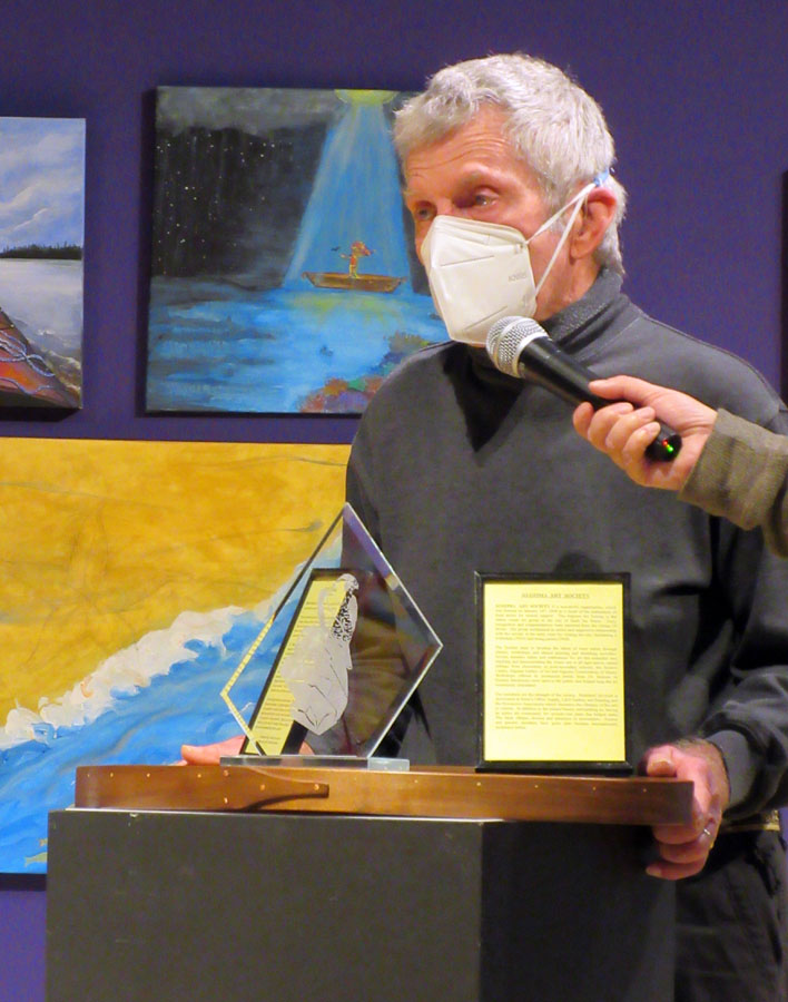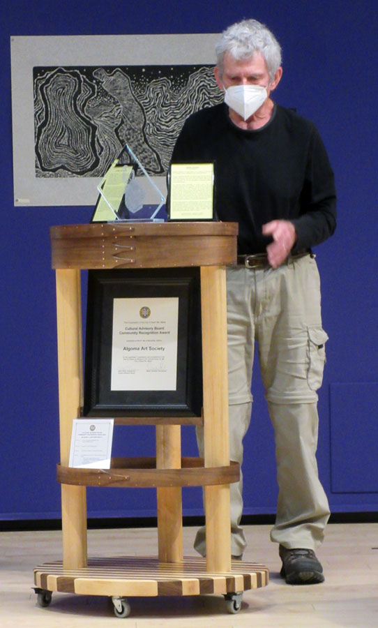 Pat Caldwell spoke about the display case his is creating to display the Algoma Art Society's City Cultural Award received in November 2020. When completed the case will be on display at the Art Gallery of Algoma.