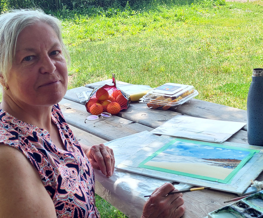 Several Algoma Art Society members enjoyed their social and plein air painting get-together at Bellevue Park.