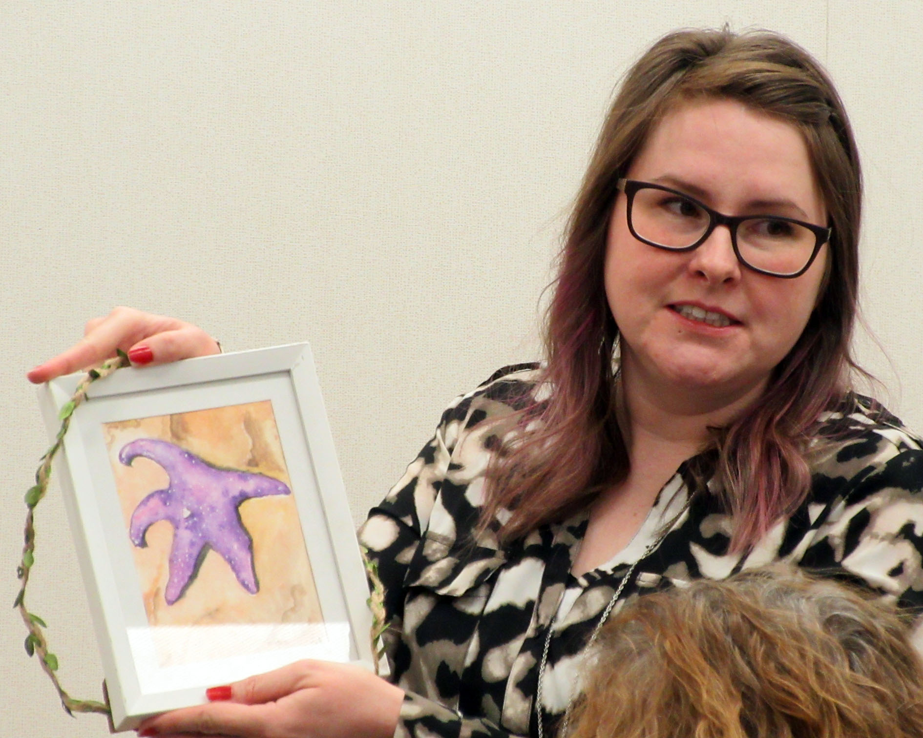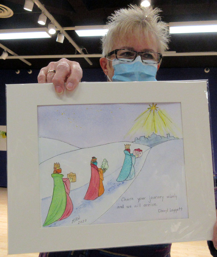 Cherie Ahvenniemi was the proud winner of the gifted presentation of a table top easel generously donated by Kim Conway-Capell.