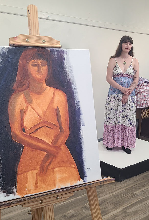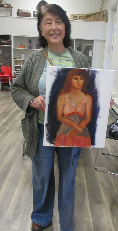 Five artists participated in a figure drawing session hosted by Algoma Art Society members Victoria Quon and Judy Henderson. Raquel was the draped model.