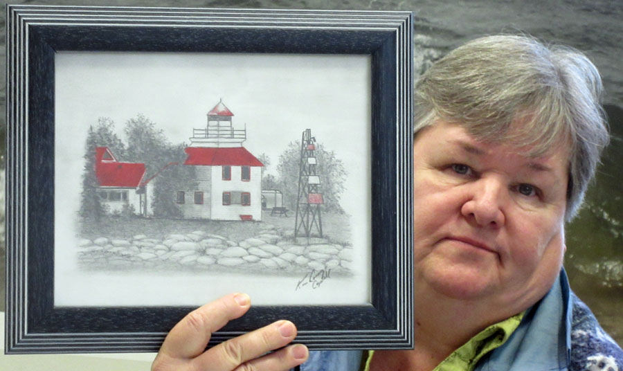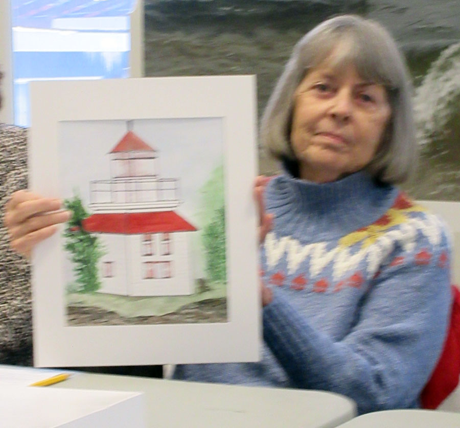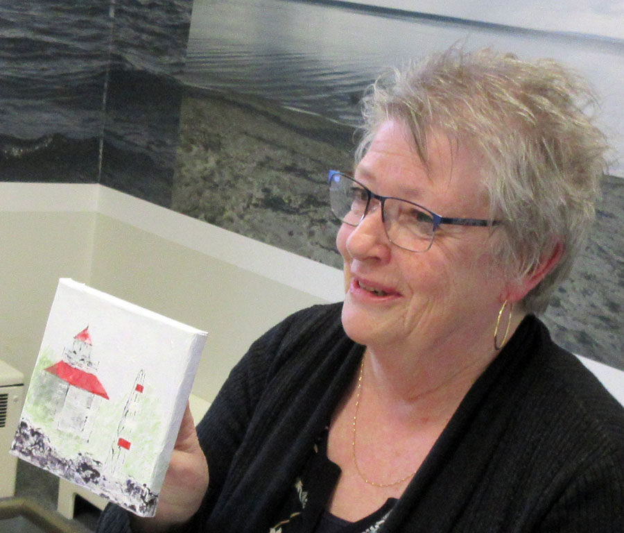Several members of the Algoma Art Society participated in a Group Paint. They painted or drew their interpretation of the same photo of the Bruce Mines Lighthouse. After members voted for their favorite art piece, two members tied. They were Ken Hagerman and Susan Balog who each received a $25.00 gift card to Stones.