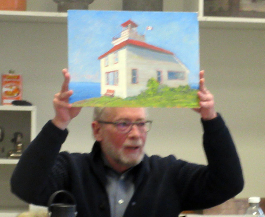 Ken Hagerman then did a very positive critique of the members' paintings of the Bruce Mines Lighthouse.