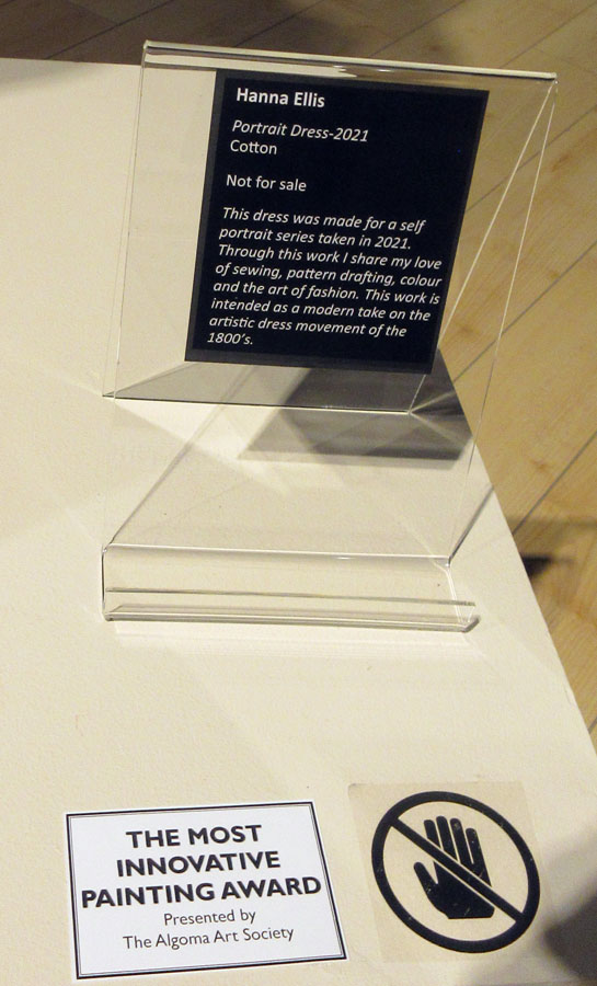 The Most Innovative Award in Memory of Nancy Caldwell and a one year membership to the Algoma Art Society was presented to Hanna Ellis for her Portrait Dress done in cotton.
