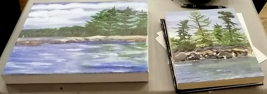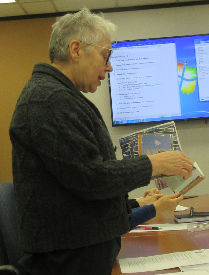 Society members displayed and talked about their paintings that they were presenting for consideration for the upcoming NOAA Calendar project. The Algoma Art Society is also considering a Calendar Project.