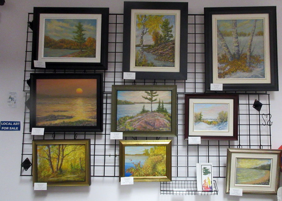 Rutger Becker's display of beautiful paintings for sale in the gift shop of the Sault Ste. Marie Museum for the month of September 2024.