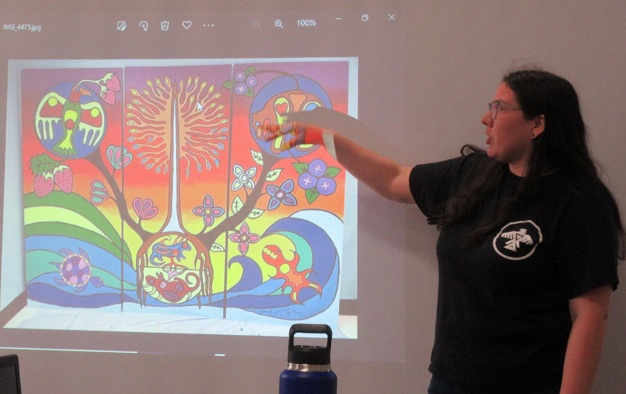 Guest Speaker – Lucia O’Connor(legal name), Lucia Laford (artist name) told us about herself as a Woodland Style Artist and her experience as co-juror for the 66th NOAA hosted by the Algoma Art Society.