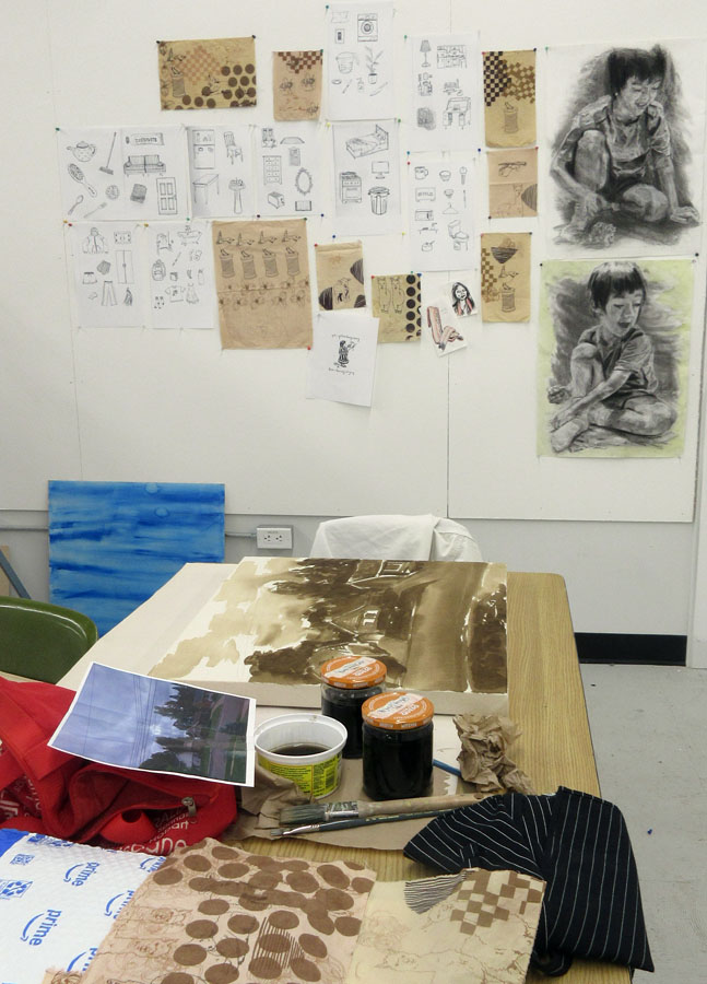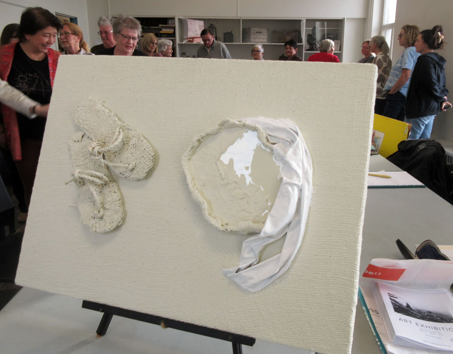 As part of Show & Tell members presented their art pieces from the studio floor that were never finished and explained the trial and tribulations of the piece.