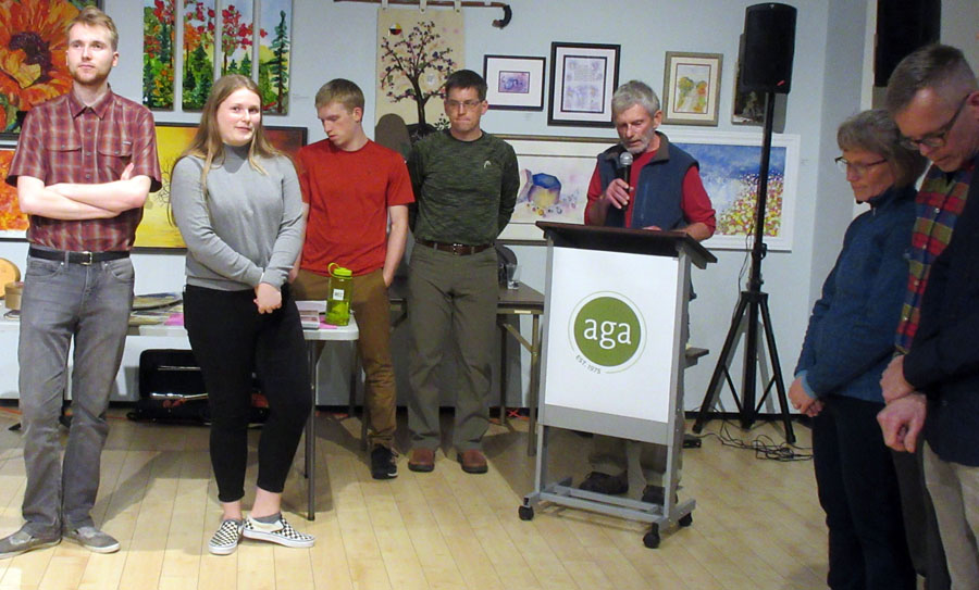 Also speaking and presenting an award was Algoma Art Society president Rutger Becker, who talked about the Art Society's connection to the NOAA, benefits of being a member and the Society's proud past connection to the Group of Seven. Rutger then presented an Algoma Art Society Award, in honour of recently deceased member Nancy Caldwell, to the artist chosen for having the Most Innovative Piece of art work at the exhibition. Winner Penny Gabor was presented with a cheque for $50.00 along with a free membership to the Algoma Art Society until September 2020. Members of the Algoma Art Society can be very proud of the number of awards they received. Member Zoey Wood-Salomon received second prize and top prize at the exhibition went to member Theresa Baic. Members Pat Caldwell, Cheryl Thomas and Darlene Robb all received Honorable Mentions. Ken Hagerman's young granddaughter also very proudly received a Participation Award.