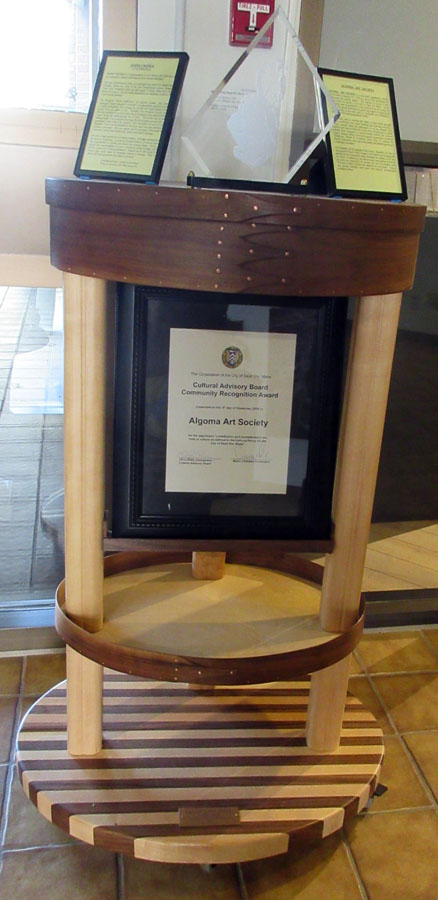 The beautiful display case featuring Algoma Art Society's 2019 Cultural Award and created by talented Algoma Art Society member Pat Caldwell was on display in the Art Gallery of Algoma foyer.