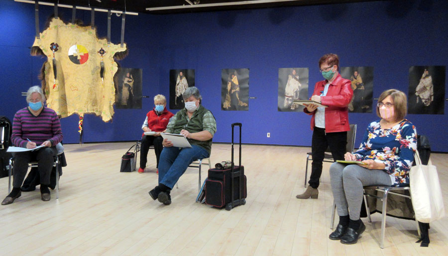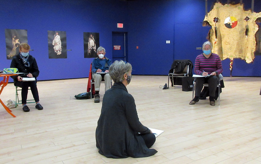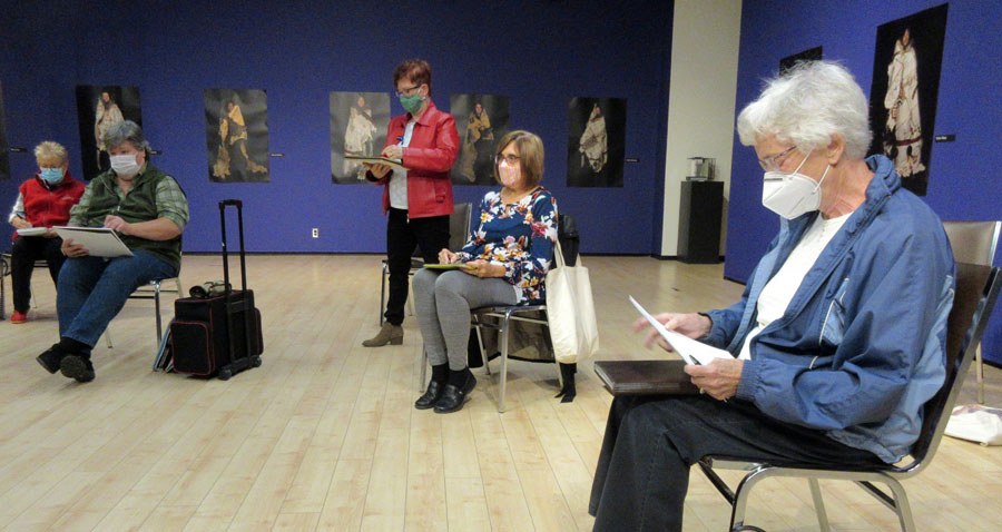 On Wednesday, October 14, 2020 Algoma Art Society members met in Gallery I of the Art Gallery of Algoma between 3:00 and 5:00 p.m. The meeting opened with 15 minutes of figure sketching led by Kathy Godfrey as several members posed. Cherie Ahvenniemi chaired the meeting and then shared several of her paintings that she was currently working on, welcoming feedback. Throughout the meeting members wore masks and self distanced. Algoma Art Society members appreciate the Art Gallery of Algoma providing us this with this artistically inspiring space to meet.