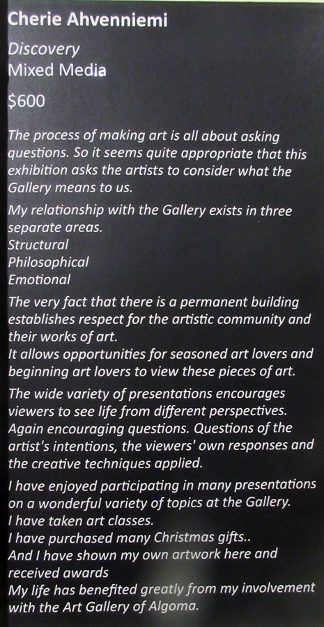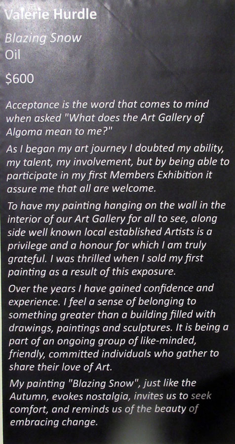 There was an excellent showing at the Opening of Algoma Art Society members, family, friends and the general public.