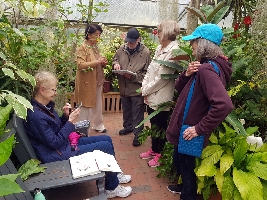 Due to inclement weather conditions, Algoma Art Society members who attended the Plein Air spent their time sketching and socializing in the Bellevue Park Greenhouse. They had a great time!