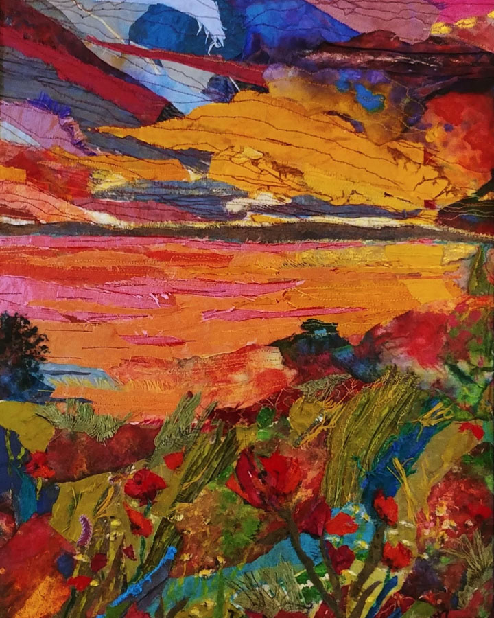 Mary's mixed media work includes colourful textile collage, as well as wool, silk and fibre felt and stitch paintings.