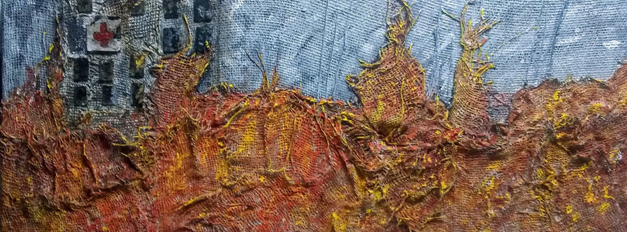 At the age of 60 Murray enrolled in university and graduated from Algoma Laurentian with his degree in political science. With a new-found interest in writing, he completed his memoirs of his final homicide cold case, Lanyard, the 1945 murder of a local high school student. Out of respect for the living members of the family the book was never published. In this latest chapter of his life Murray has developed his own unique style of mixed media artwork blending fabric and adhesive with acoustic board. Nature in all its grandeur provides the stage for Murray’s abstract interpretation.