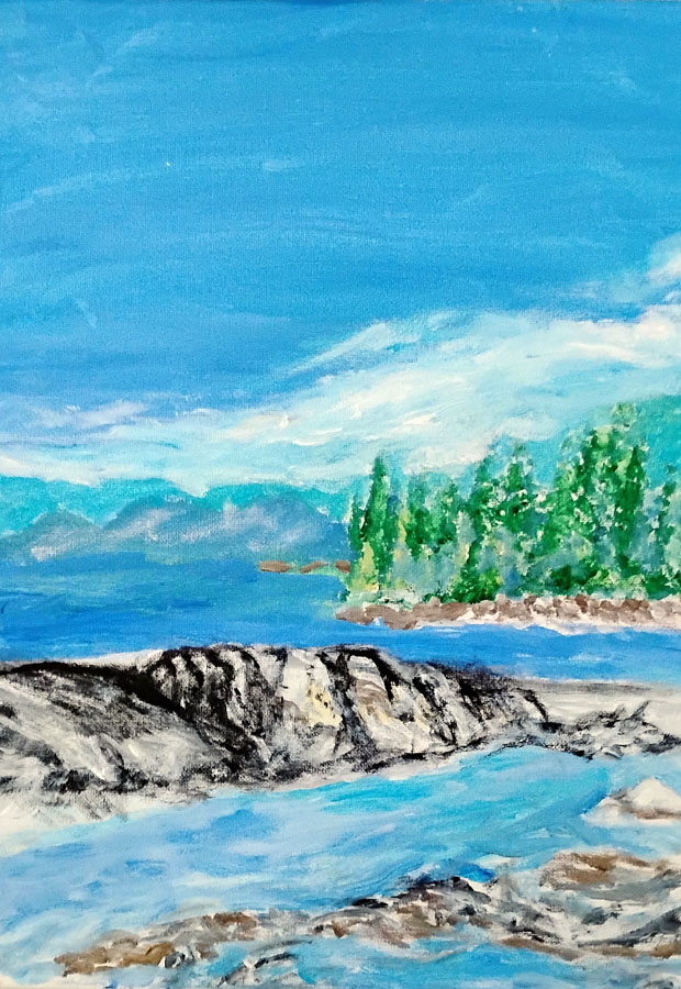 My membership in the Algoma Art Society in 2021, created new Artistry opportunities. There was the 75" anniversary exhibition at the Algoma Art Gallery where I displayed my first work, “River Fantasy”. In the following two years, I showed “The Storm” and “Radiance”. I have exhibited paintings at the Hub at Spring. In December, 2023, I had an exhibition of my work at the Sault Museum.