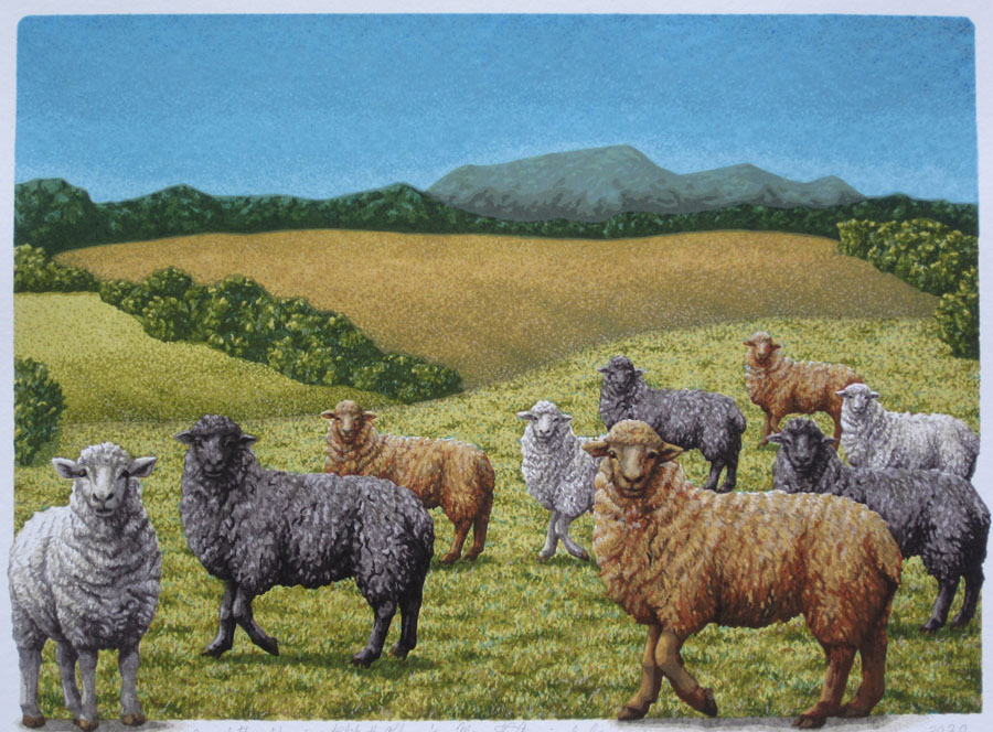 Honorable Mention - Margot Cormier Splane for Hand Pulled Serigraph entitled One of These Sheep is Not Like the Other