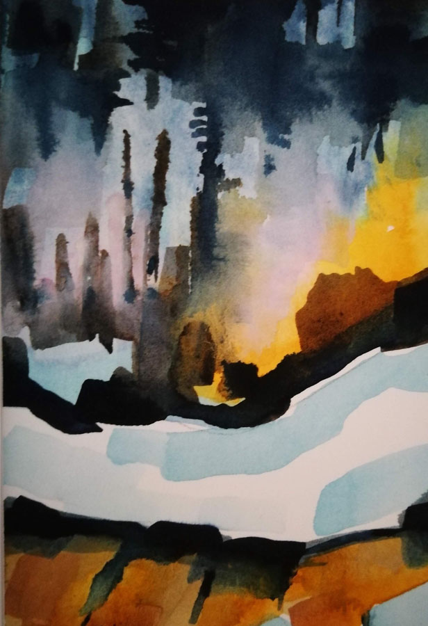 Stones Office Supply Award - Best Abstract - Liz Pacey - Watercolour entitled Snow and Ice